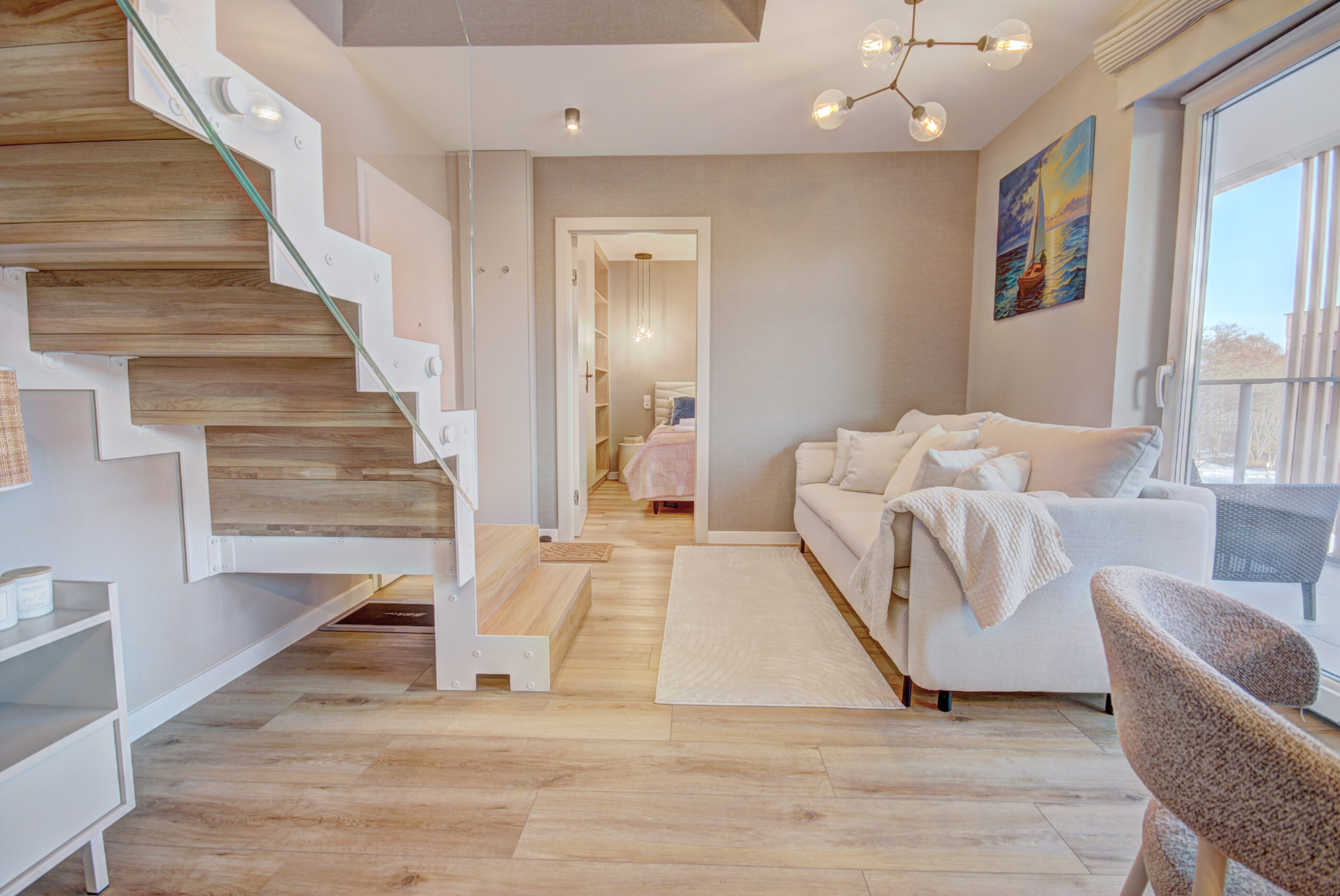 Ten przestronny, nowoczesny dwupoziomowy apartament to idealna propozycja na komfortowy i relaksujący pobyt w samym sercu Helu – w apartamentowcu Casa Baia. Wnętrze zaprojektowane zostało z myślą o wygodzie rodzin i grup przyjaciół, oferując wyraźny podział na strefy dzienne i nocne: przestronny salon z aneksem kuchennym – idealny do wspólnego spędzania czasu, gotowania i odpoczynku po dniu pełnym plażowania. Dwie komfortowe sypialnie zapewniają prywatność i wygodny sen dla wszystkich Gości. Dwie łazienki zwiększają komfort pobytu, szczególnie przy większej liczbie osób. Apartament Casa Baia 53 łączy w sobie nowoczesny design, funkcjonalny układ i przytulną atmosferę – idealne miejsce zarówno na letni urlop, jak i spokojny sezon poza sezonem.