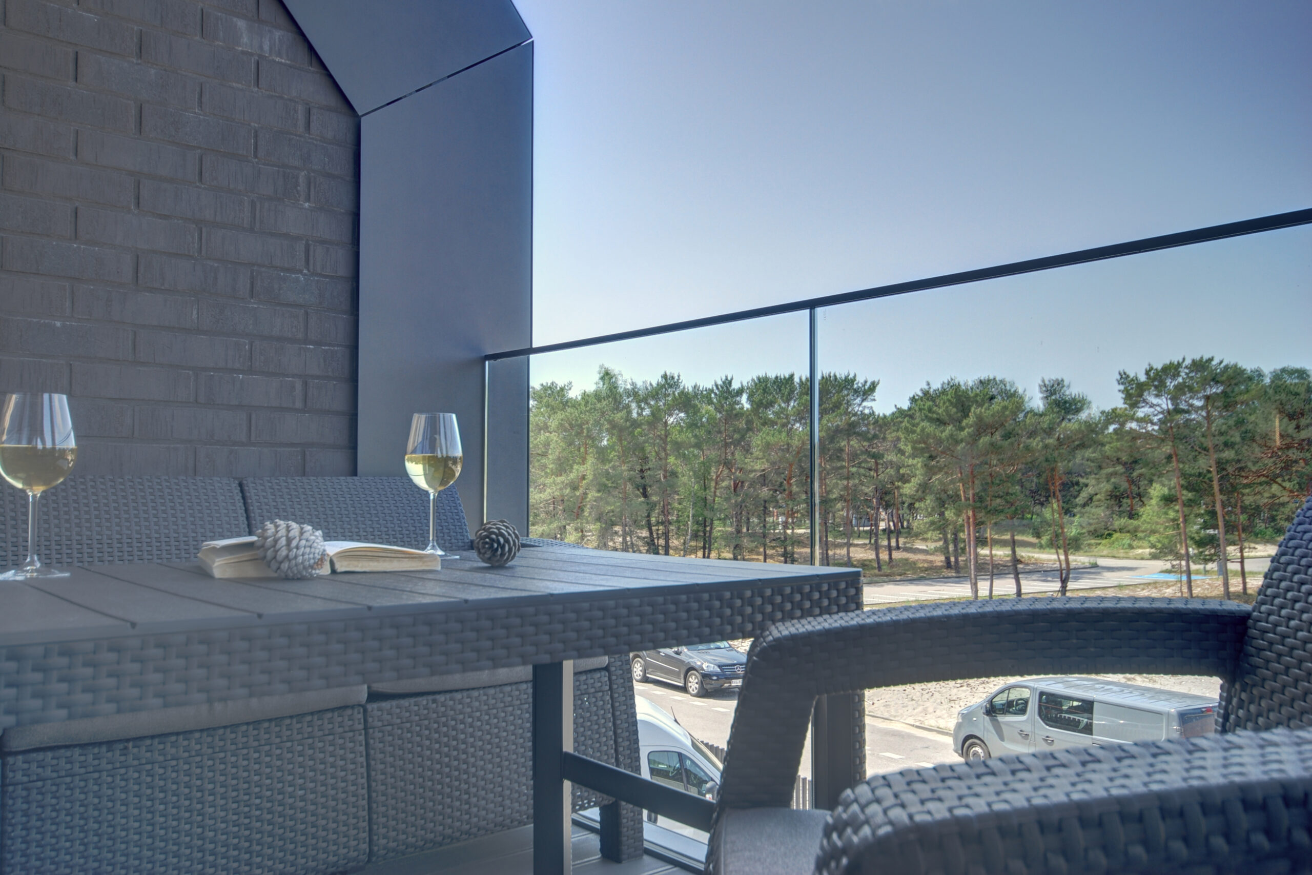 Czarna Perła to wyjątkowy apartamentowiec w sercu Helu – nowoczesna inwestycja inspirowana lokalną, kaszubską tradycją. Położony w spokojnej, leśnej enklawie przy ul. Wydmowej, tuż przy wydmach i w otoczeniu sosnowego lasu, zapewnia bezpośredni kontakt z naturą i kameralną atmosferę. Czarna Perła wyróżnia się eleganckim designem, wysokim standardem wykończenia.  Do dyspozycji gości jest zewnętrzny, odkryty basen czynny w okresie 15 czerwiec – 15 wrzesień. Przestronne apartamenty to idealne miejsce na wakacyjny wypoczynek. Apartament 201 posiada przypisane miejsce w hali garażowej